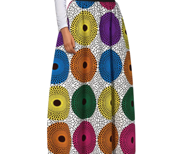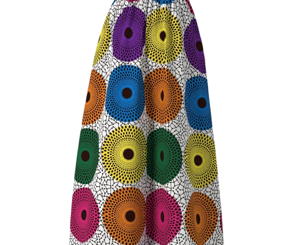 Magnifique jupe longue blanche imprimée wax motif cercles multicolores