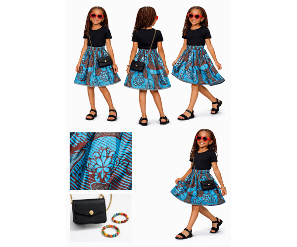 Vos princesses affirmeront leur style avec notre jupe en wax, alliance parfaite entre authenticité africaine et élégance contemporaine.