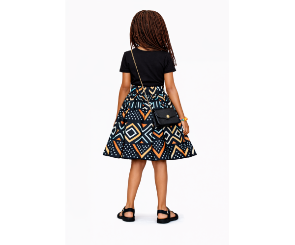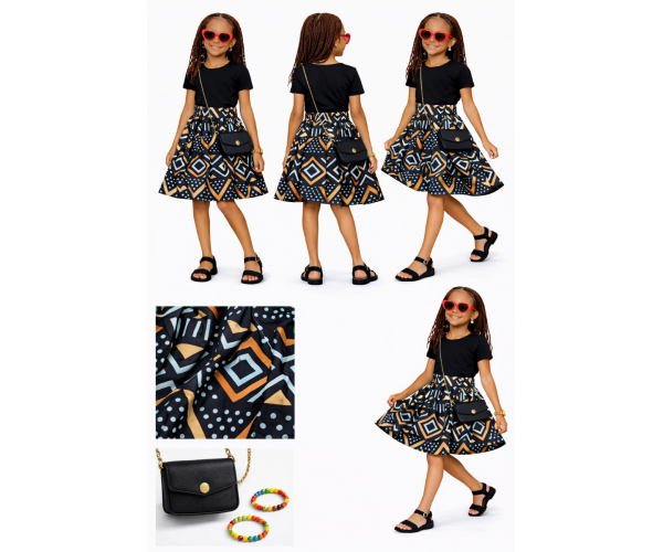 Vos princesses affirmeront leur style avec notre jupe en wax, alliance parfaite entre authenticité africaine et élégance contemporaine.
