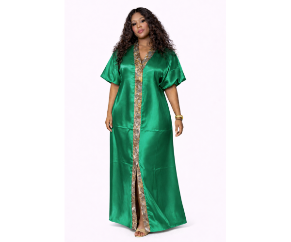 Kaftan satin et brocart fil d'or "ÉMERAUDE"