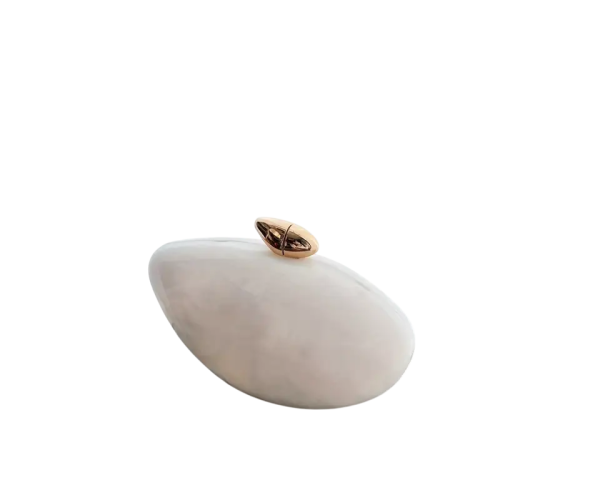 Sac de soirée minimaliste en acrylique et PVC marron café avec chaîne de perles, fermeture magnétique et bandoulière amovible pour les mariages et les dîners