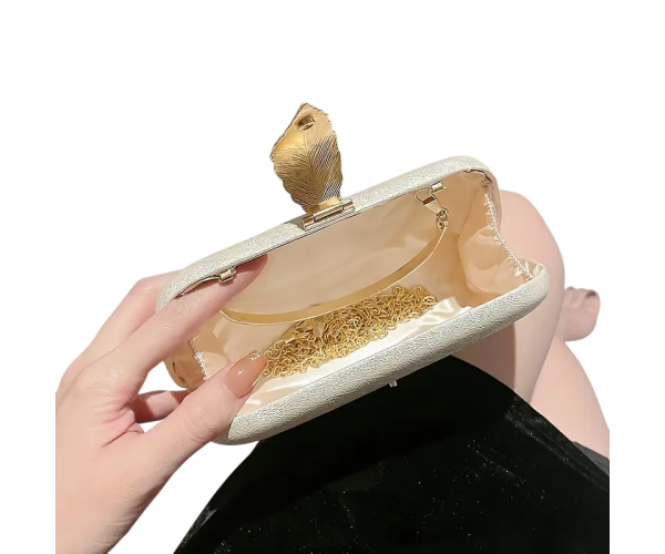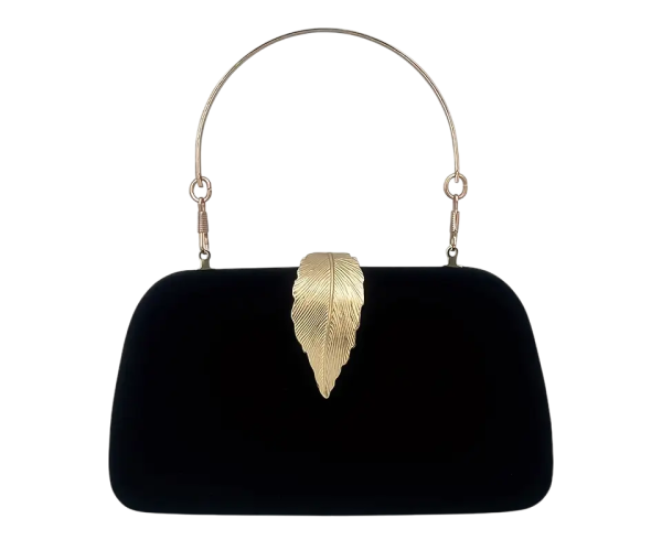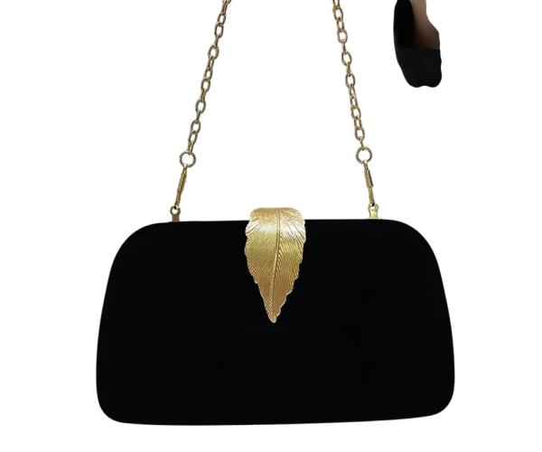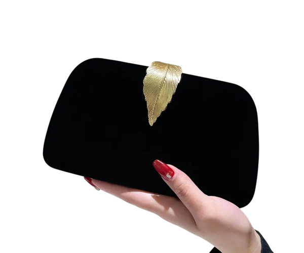 Sac de soirée minimaliste en velours avec chaîne dorée, fermeture feuille dorée , magnétique et bandoulière amovible pour les mariages et les dîners