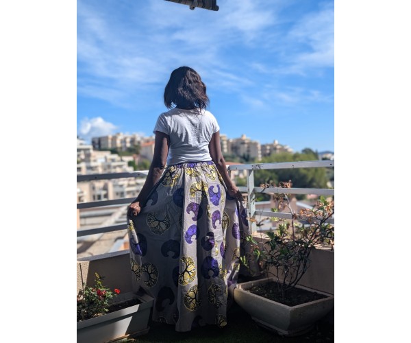 Confectionnée à la main à partir de tissu 100 % coton premium, cette jupe met à l’honneur le savoir-faire traditionnel du wax, célèbre pour ses motifs vibrants et ses couleurs éclatantes.