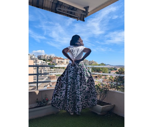 Laissez-vous séduire par notre jupe en wax signée Olayek, un hommage vibrant à la beauté des cultures africaines et à la féminité rayonnante.