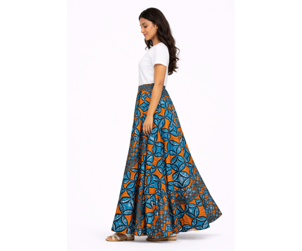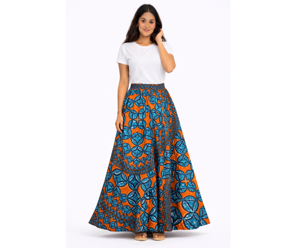 Confectionnée à la main à partir de tissu 100 % coton premium, cette jupe met à l’honneur le savoir-faire traditionnel du wax, célèbre pour ses motifs vibrants et ses couleurs éclatantes.