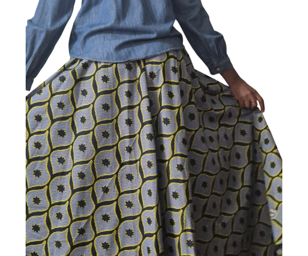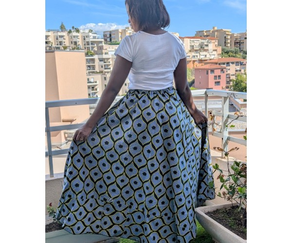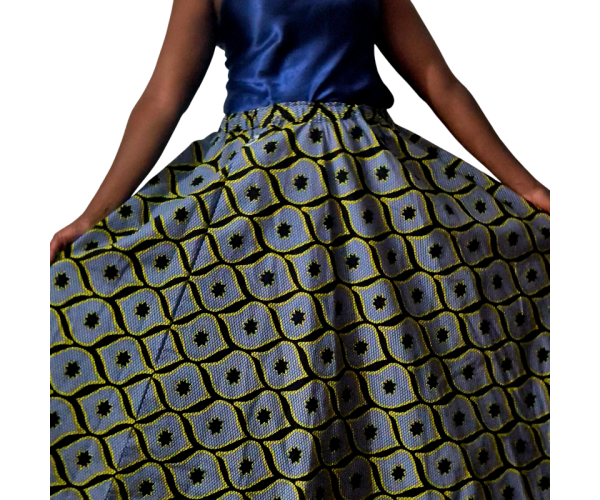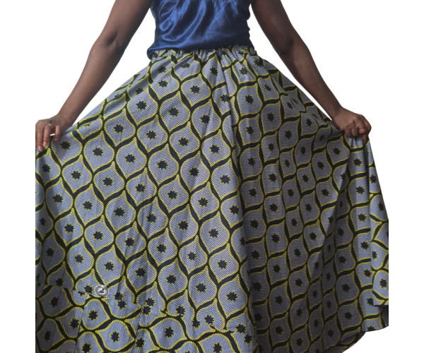 Confectionnée à la main à partir de tissu 100 % coton premium, cette jupe met à l’honneur le savoir-faire traditionnel du wax, célèbre pour ses motifs vibrants et ses couleurs éclatantes.