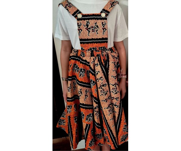 Confectionnée à la main à partir de tissu 100 % coton premium, cette robe salopette met à l’honneur le savoir-faire traditionnel du wax, célèbre pour ses motifs vibrants et ses couleurs éclatantes.