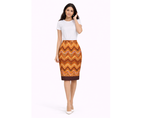 Jupe Crayon en bazin, motif zigzag
