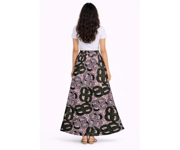Confectionnée à la main à partir de tissu 100 % coton premium, cette jupe met à l’honneur le savoir-faire traditionnel du wax, célèbre pour ses motifs vibrants et ses couleurs éclatantes.