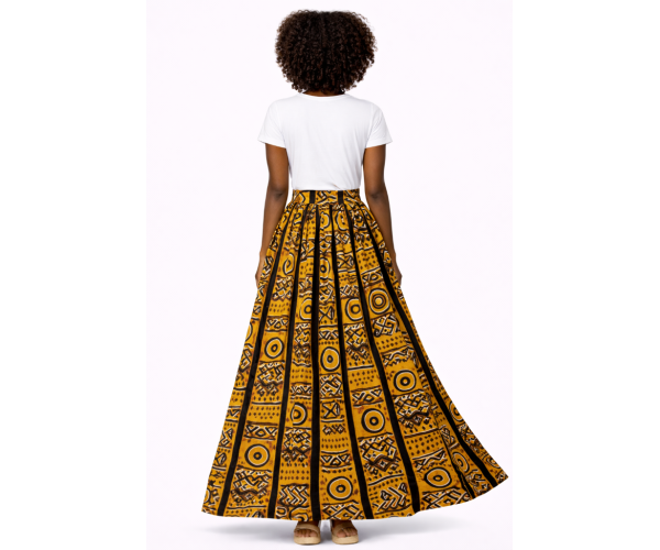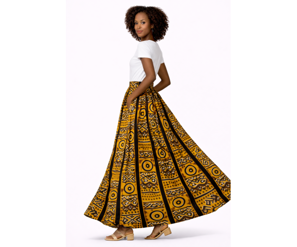 Jupe bogolan pas cher longue motif rond