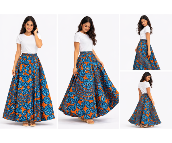 Confectionnée à la main à partir de tissu 100 % coton premium, cette jupe met à l’honneur le savoir-faire traditionnel du wax, célèbre pour ses motifs vibrants et ses couleurs éclatantes.