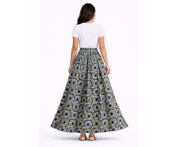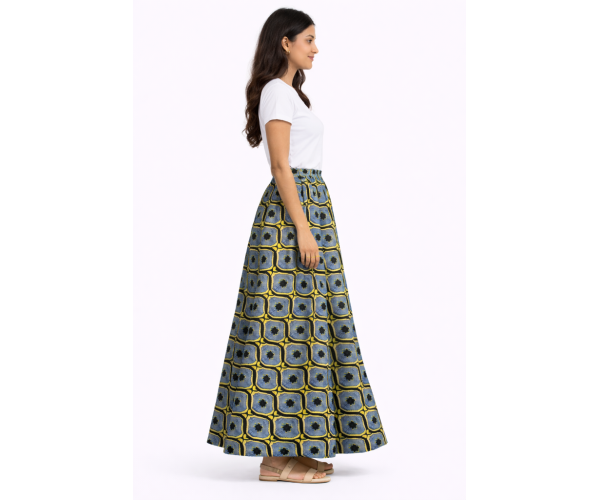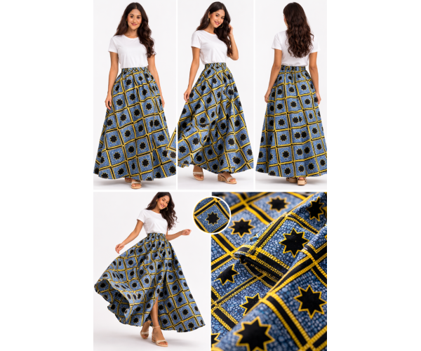 Confectionnée à la main à partir de tissu 100 % coton premium, cette jupe met à l’honneur le savoir-faire traditionnel du wax, célèbre pour ses motifs vibrants et ses couleurs éclatantes.