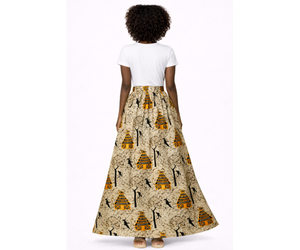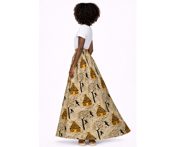 Confectionnée à la main à partir de tissu 100 % coton premium, cette jupe met à l’honneur le savoir-faire traditionnel du wax, célèbre pour ses motifs vibrants et ses couleurs éclatantes.